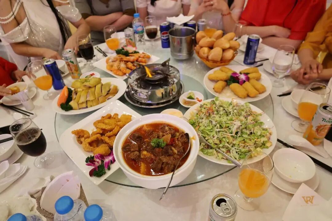 据公司工会主席阮友光(Nguyễn Hữu Quang)先生介绍,这次“年终晚宴”就是公司对大家2025年辛勤付出的郑重一声“谢谢”,同时也想给大家鼓鼓劲,好在2026年继续并肩往前冲。晚宴选在当地顶级的皇家宫殿(Royal Palace)和白宫(White Palace)等高档餐厅举办,人均消费标准40万越南盾(约合人民币104元)——说实话,在越南工厂工人群体里,这已经算是相当体面的待遇了。