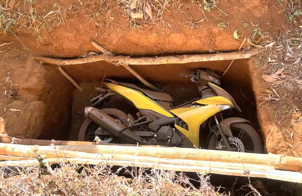 得手后,他们的销毁证据环节也执行得毫不手软:迅速烧掉Grab外套、背包、鞋子、头盔等所有可能留下痕迹的衣物;接着,他们把作案用的Exciter摩托车挖坑埋进土里(后来警方在距离现场约5公里的奠富工业区附近一片松树林中挖出这辆车,旁边还有燃烧痕迹的区域,疑似销毁其他证据的地点)。随后,两人换上事先准备好的另外两辆摩托车,把赃款塞进民族风的背篓里,伪装成少数民族上山做农活的样子,辗转逃离,最终南下胡志明市试图变现赃物,同时大幅减少社交、频繁换住处。黎文恩后来甚至回到广义老家,装作若无其事地过日子;范英才则继续四处流窜,像幽灵一样居无定所。两人还故意分开行动,想让警方追踪更难。