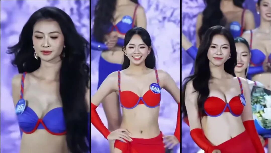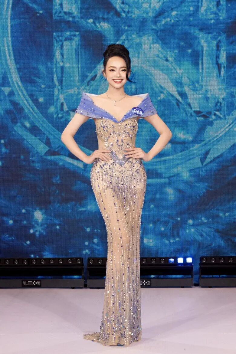 当然,这届比赛的舞台也足够精彩。亚军由22岁的黎芳庆如(Lê Phương Khánh Như)摘得,她来自庆和省,目前是胡志明市经济大学(Đại Học Kinh tế TP HCM)旅游系大四学生,身高1.68米,三围84-63-98厘米,曾拿下2024全市大学生选美冠军和2023年越南南部地区大学小姐亚军,青春活力四射。季军则是2005年出生的顺化姑娘张心如(Trương Tâm Như),就读岘港FPT大学(Đại học FPT Đà Nẵng),雅思8.0分,曾参与“英语让生活更美好——儿童英语”公益项目,在多个校园公益和领导力活动中都表现突出,简直是新时代越南女孩的典范。