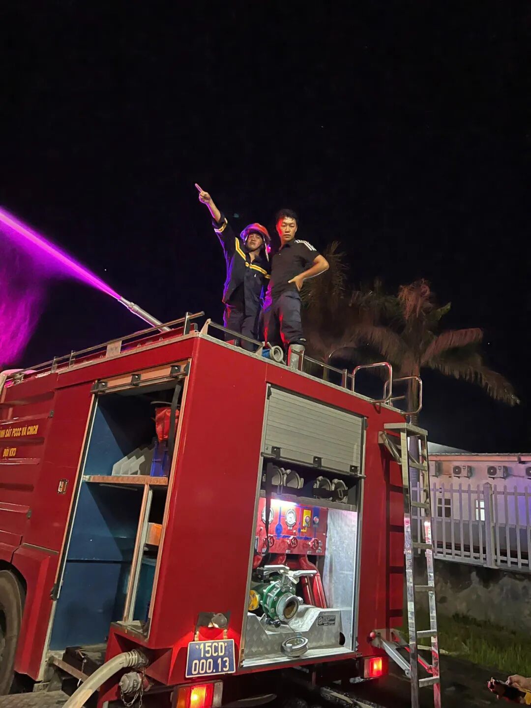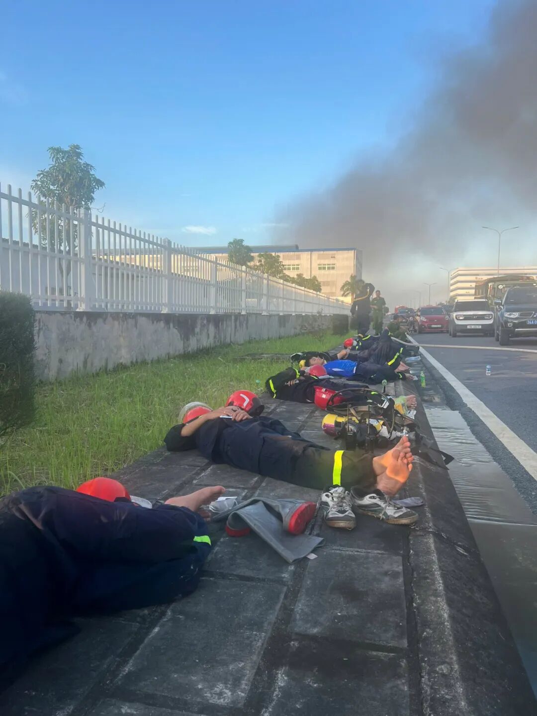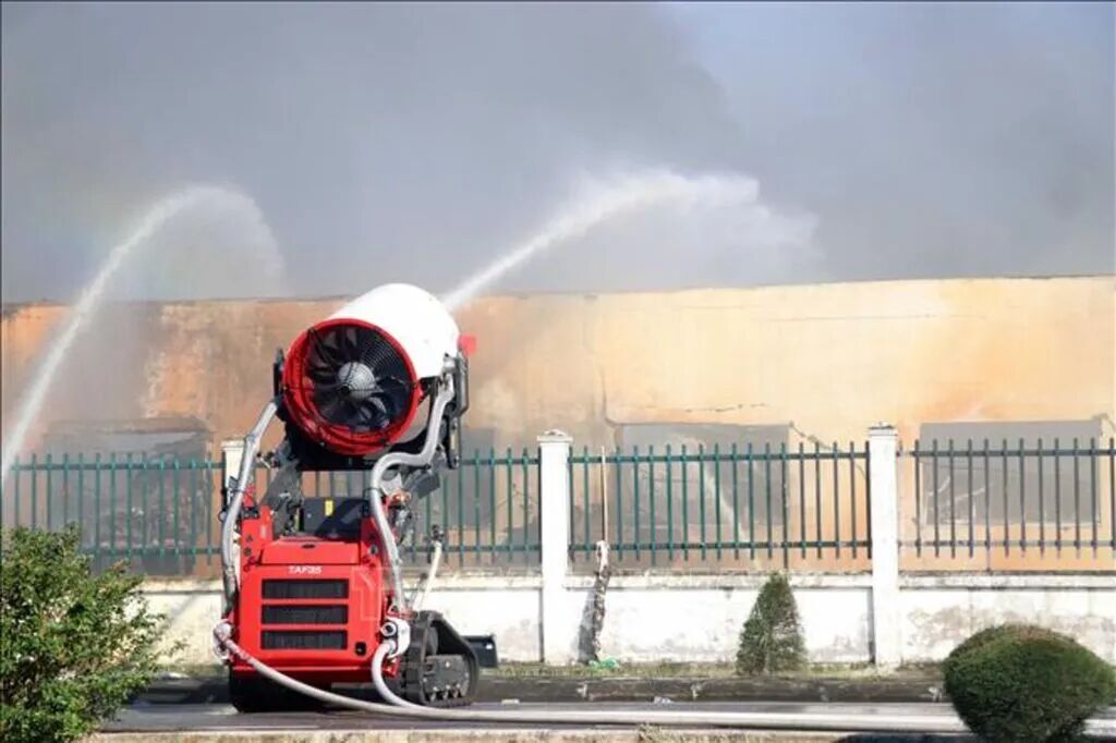 海防市消防救援警察局114指挥中心接到报警后,迅速协调涂山工业园区管理委员会与涂山坊人民委员会,调集10辆消防车、灭火机器人及数十名消防队员赶赴现场。面对烈焰和滚滚浓烟,消防员们制定灭火方案,奋力阻止火势向周边扩散。火场情况复杂,黑烟高达数百米,爆炸风险不断。直到凌晨5点,火势得到控制。