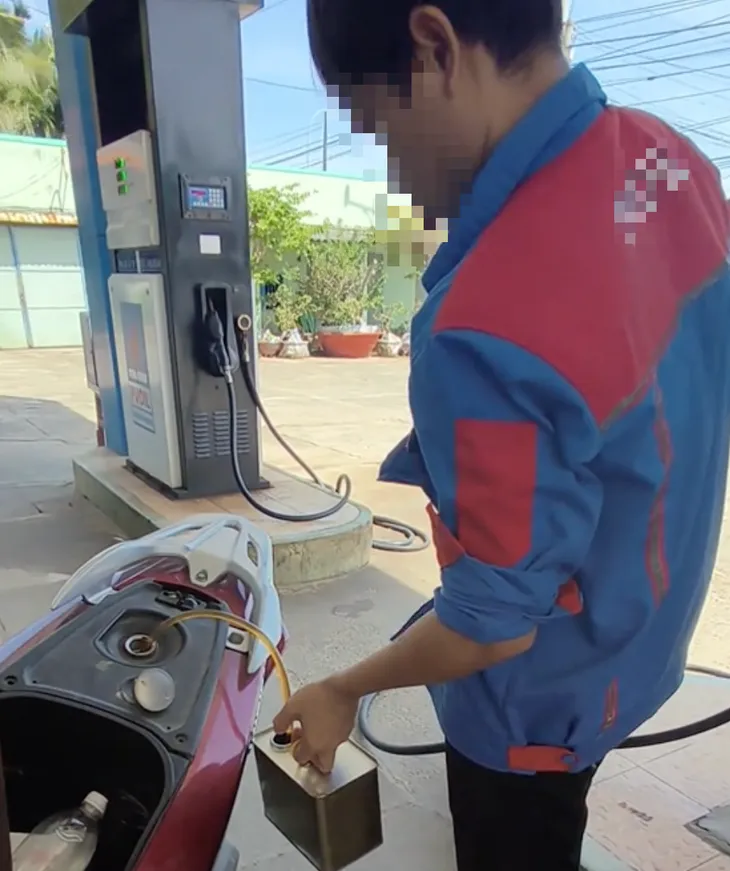 事情的来龙去脉,得从一段在网上疯传的视频说起。视频由账号“My Quỳnh”发布,拍摄地点就是林同省进城坊的进城石油商店。画面里,一位骑摩托车的顾客要求加注5万越南盾(约合13.5元人民币)的汽油。油加满了,他摸摸口袋没现金,便提出用银行转账支付——这在如今的越南,可谓再正常不过的操作了,谁知工作人员死活不答应。